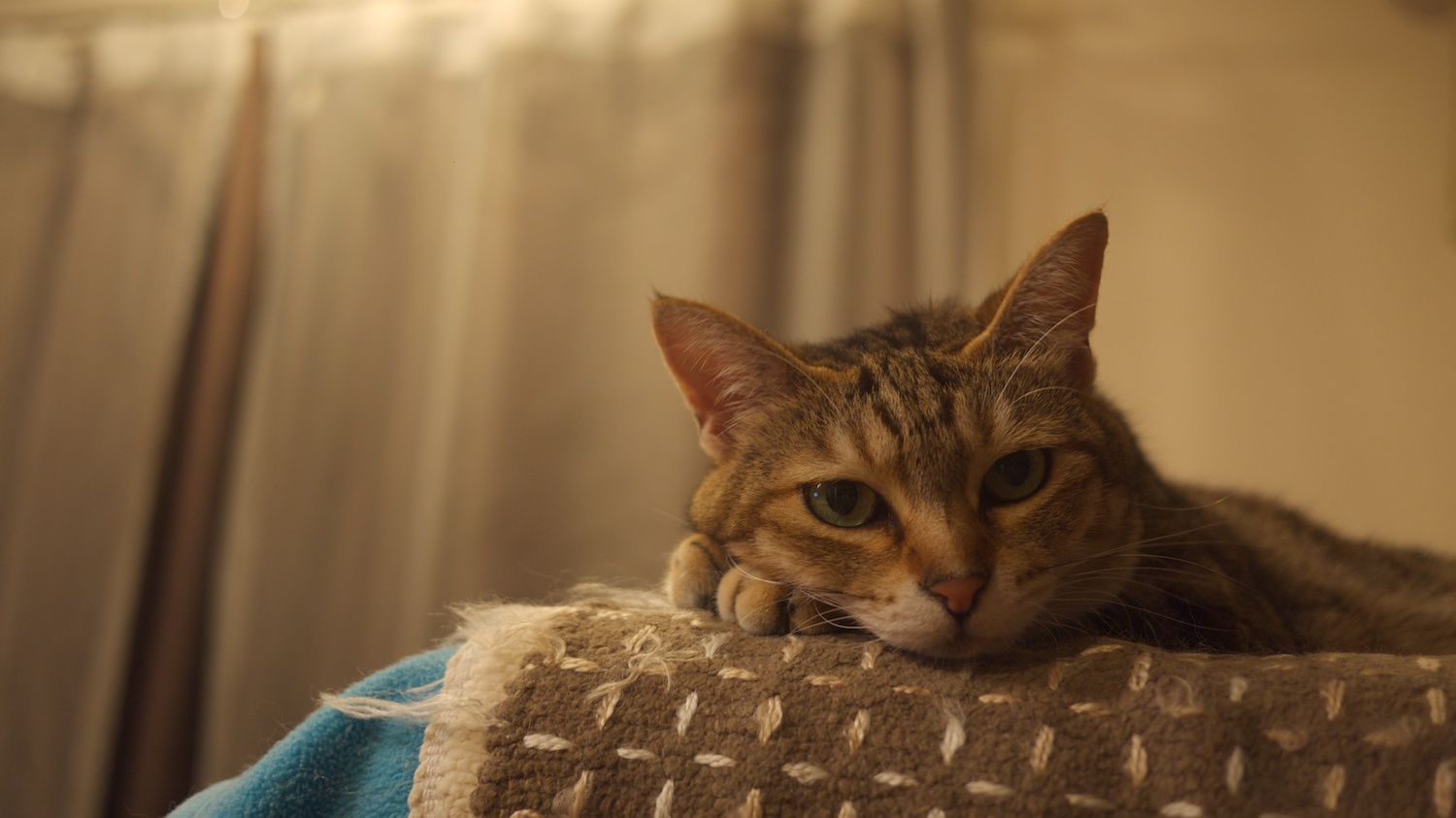 普段、ハナはネコベッドに入らないのでとても珍しいです。