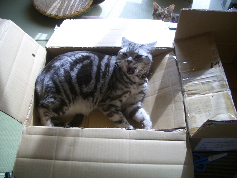 獣医さんの前では、怯えていたハナも、家に帰ってからは、グリを挑発しています。