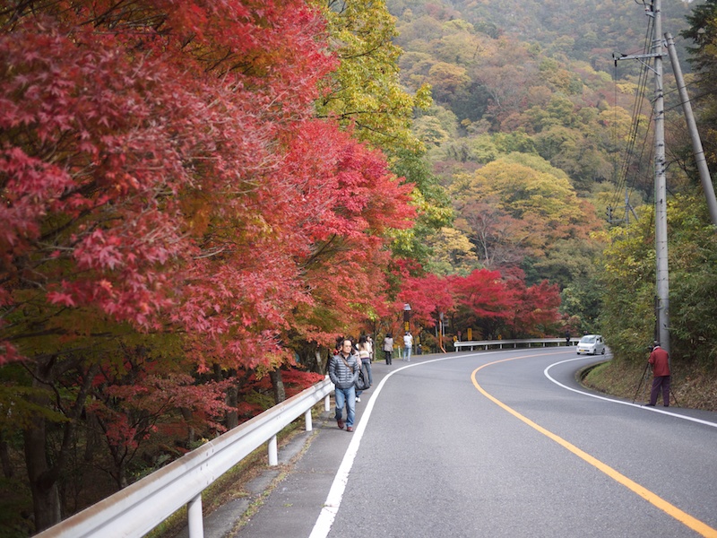 紅葉観賞も終え、これからどうするかと話になったところ、私のもう一つの工場に勤務している自転車チームの練習コースを走ろうとの提案があり、どんな道かわからないが快諾し、みんなで走り出しました。