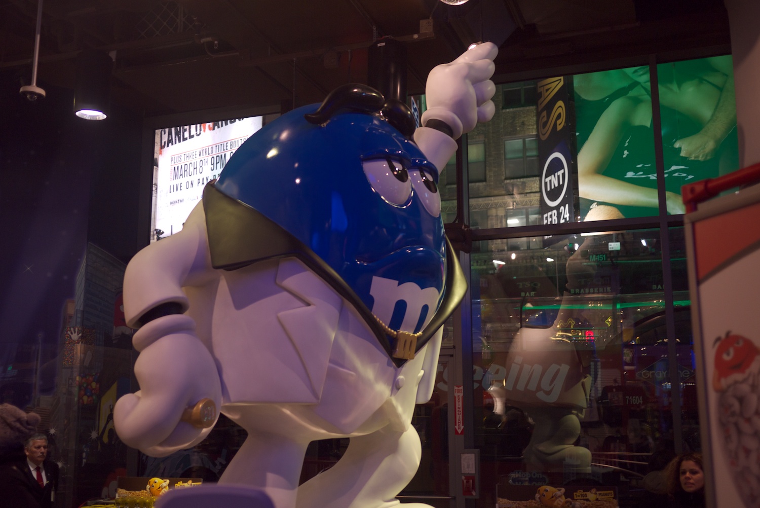 駅を出てTimes Squareに向けて歩いて行く。途中にM&Mのお店に寄り、でっかい人形を見る。