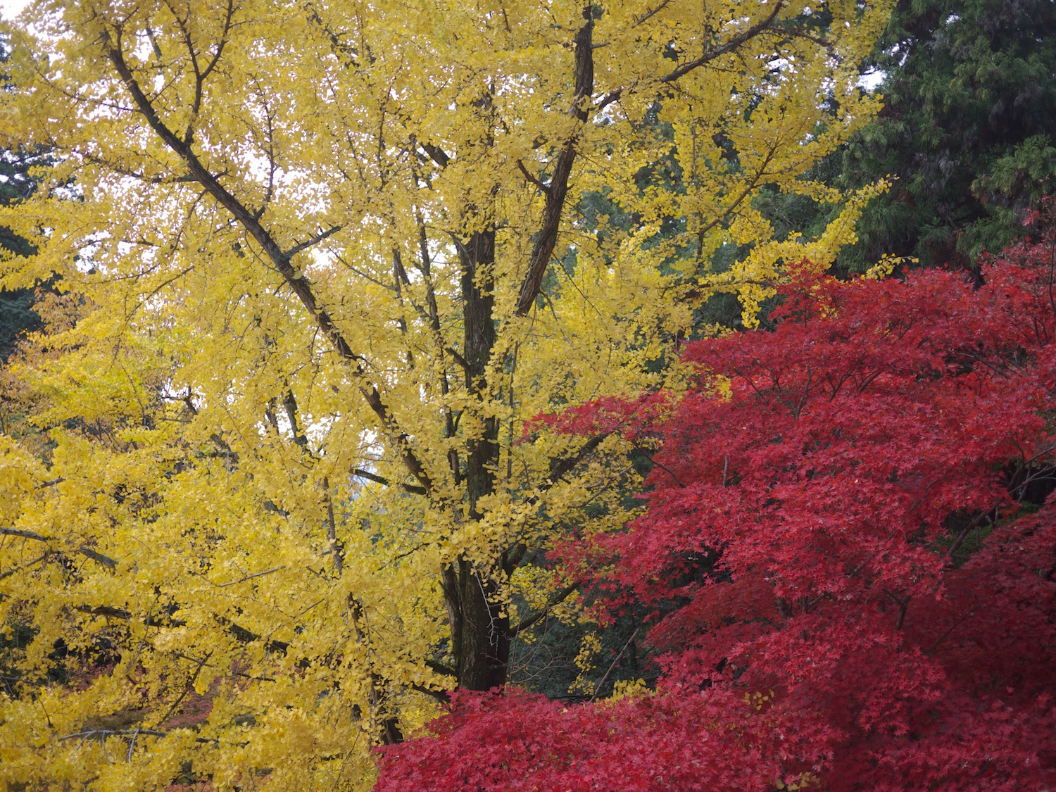 もみじとイチョウの色合いも抜群