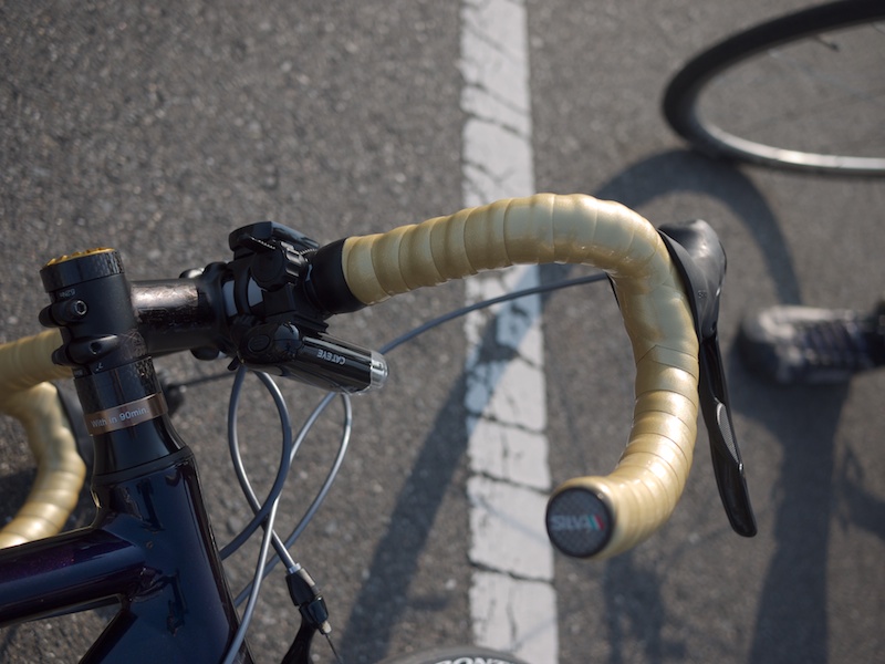 この先輩は3台自転車を持っていて、ミニベロには銀色のバーテープをつけている。