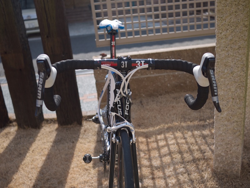自称28歳の先輩の自転車のバーテープが変わっていて、それを見せつけるためだけに、軽いTREK Madoneではなく、Anchorを乗ってきていた。
