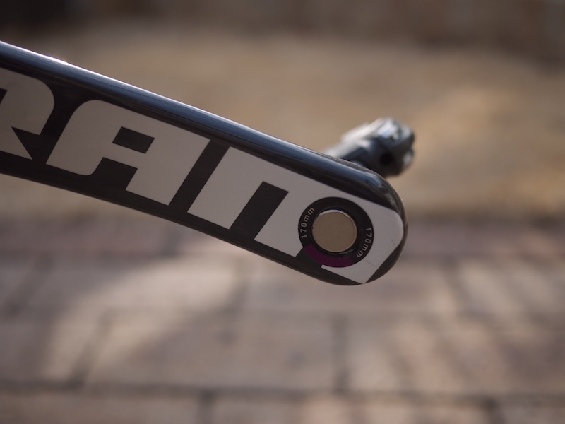 そして、クロモリではなくステンレスシャフトを選んだのですが、一つ気がかりであった「ケイデンス測定用の磁石」もステンレスのシャフトにくっついたので、一安心です