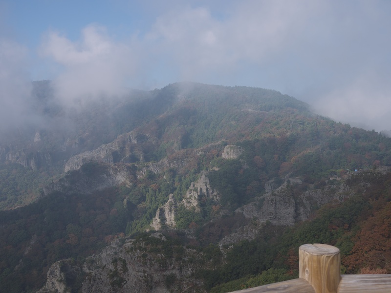 残念なことに、紅葉の時期はまだ先のようで、更にガスがかかっていた。でも天気は徐々に良くなっていて見晴らしは抜群。