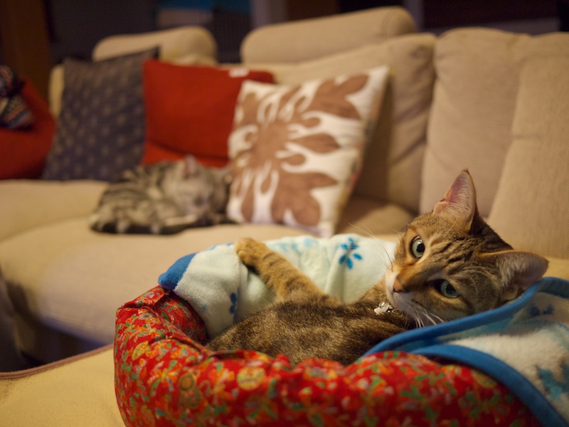 ひとつ悪い点というと、夜に私がベッドで寝ていると、必ずハナがやってきます。