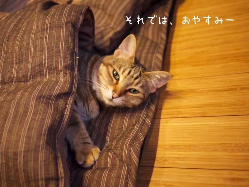 風呂上りの膝には乗ってくれるが、布団の中には入ってくれないのが現在の悩みです。