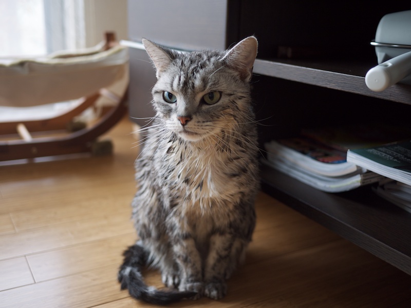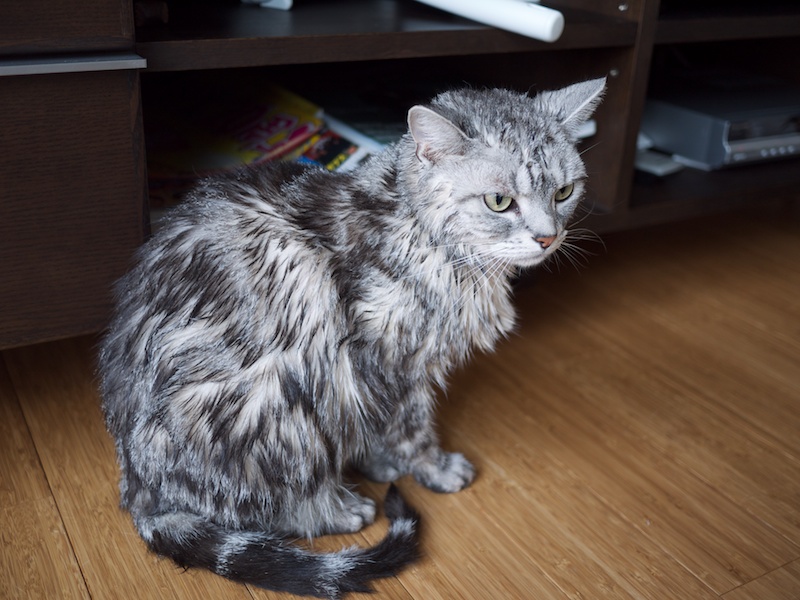 グリは毛が比較的少ないので、濡れても見た目通りに細く、驚きはない。