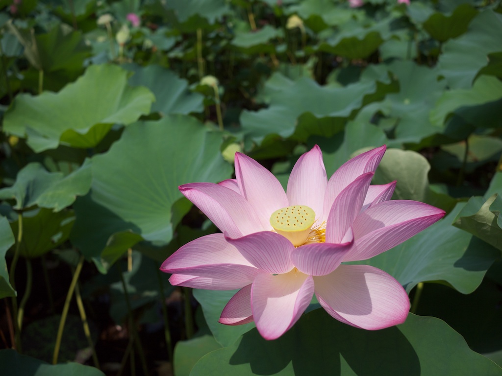 その参道の途中にある「宝物館」の前には、綺麗な蓮の花が咲いていました。