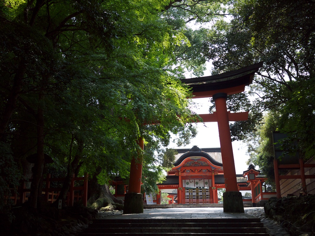 さらにさらに歩いて、山の中へ歩いて行くと、涼し気な木立の中に本殿が見えてきます