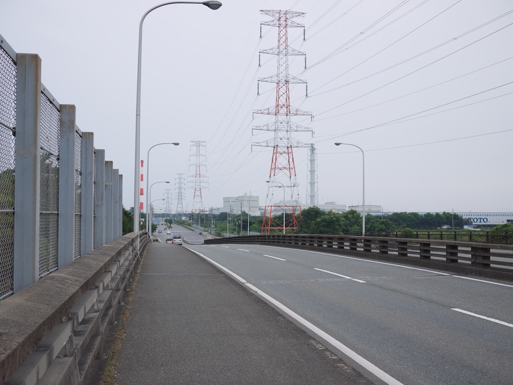工場地帯との堺にあるグリーンベルト沿いの道を東に進み