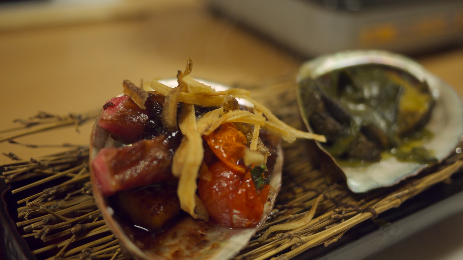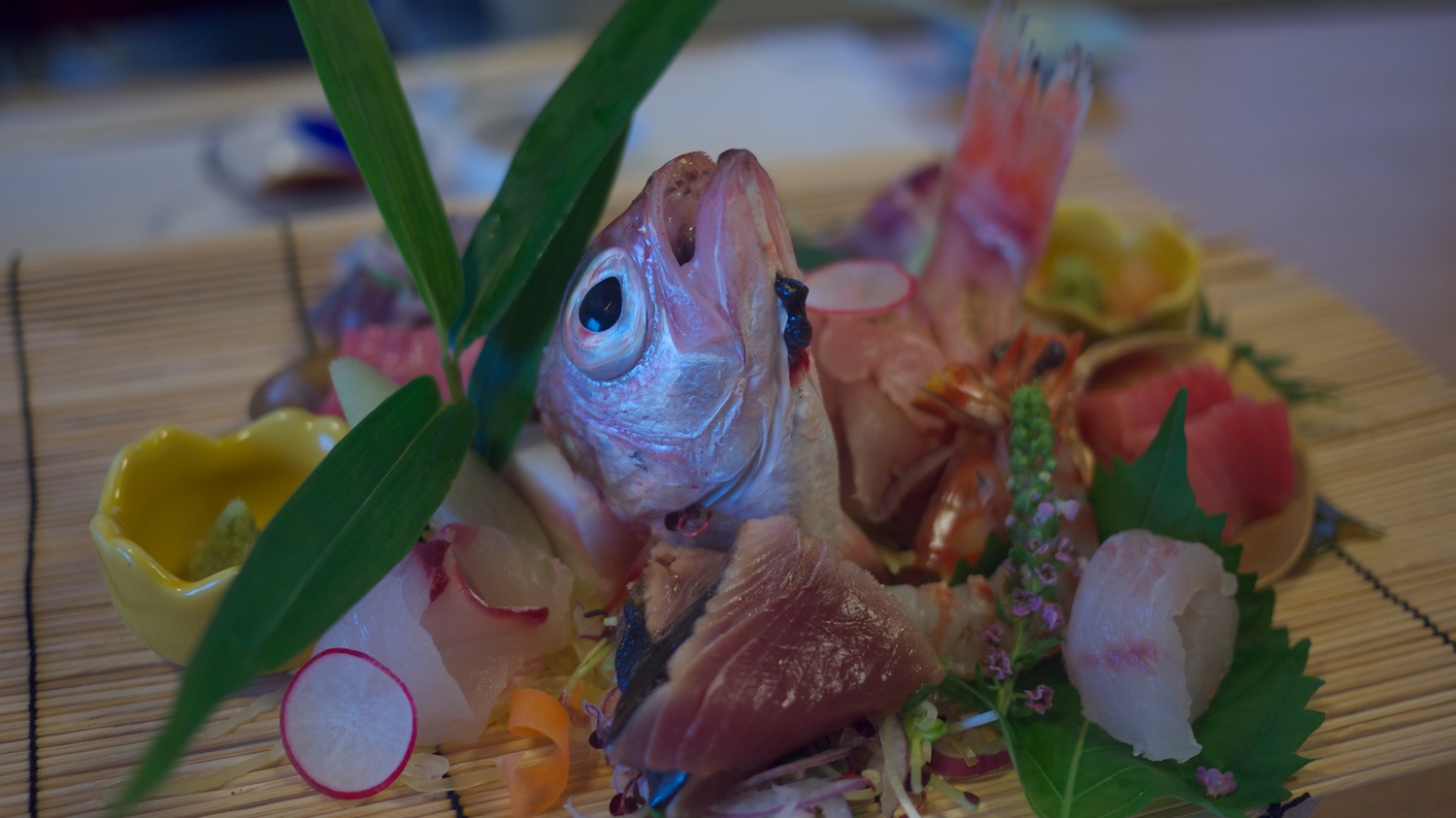 また猛暑の中に戻り、旅館に向け出発。そして、温泉に入ったあとにおまちかねの夕食