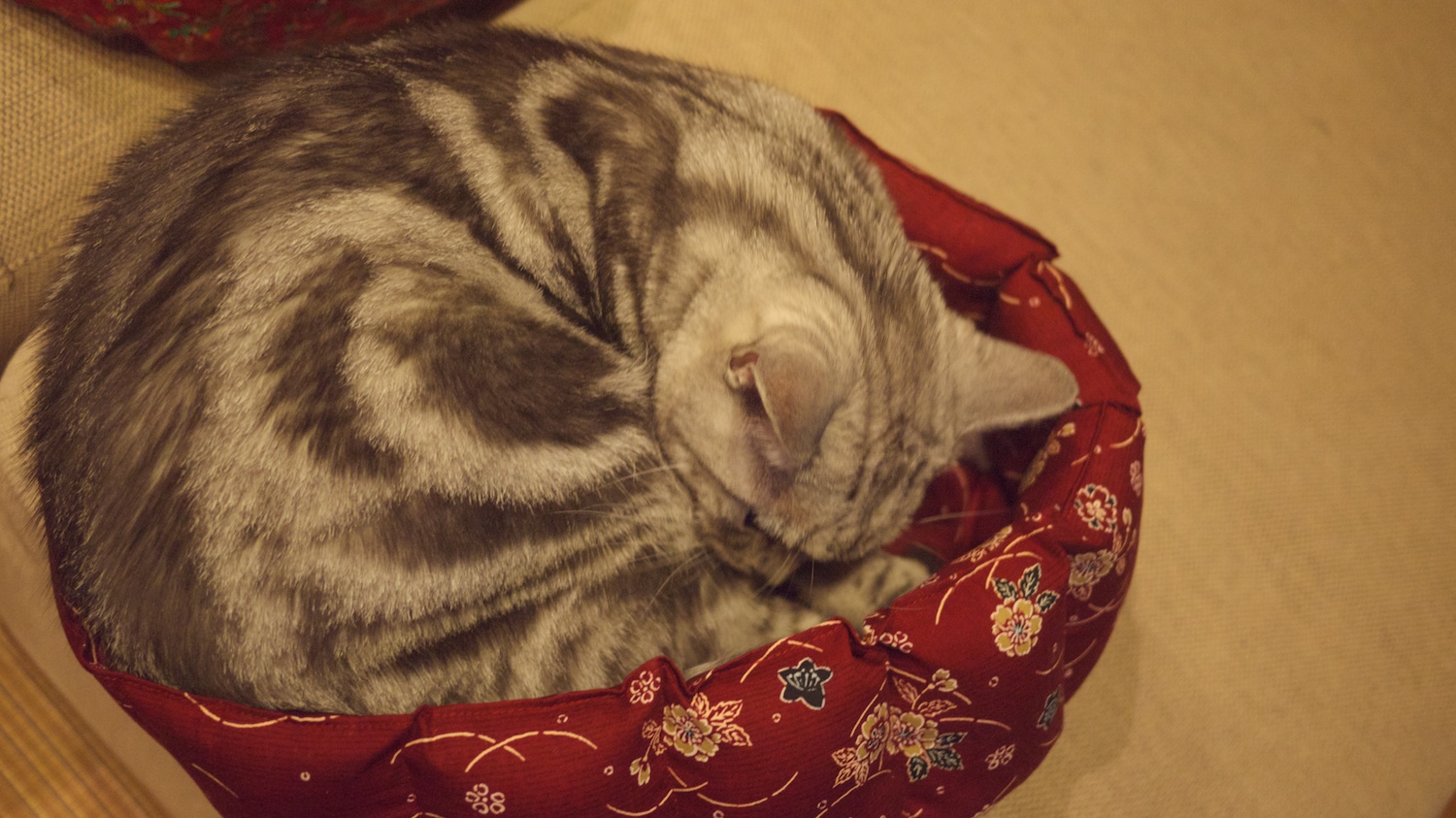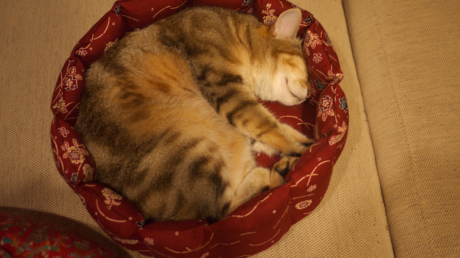 普段、ハナはネコベッドに入らないのでとても珍しいです。