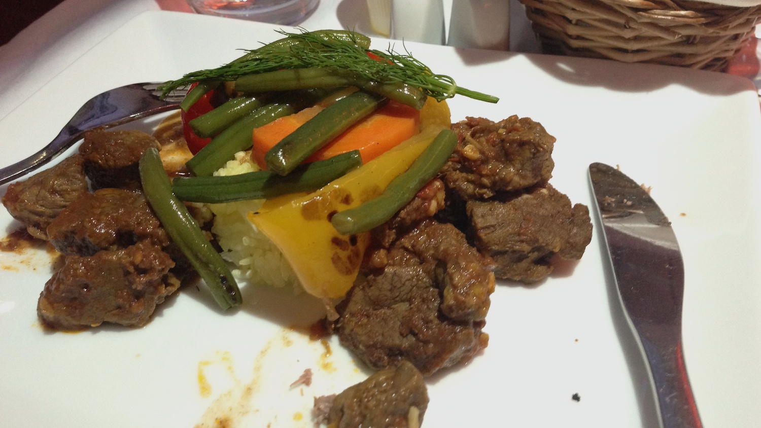 今回はトルコ航空だったので、トルコ料理っぽいラム肉を選んだが、これは失敗。