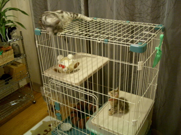 グリがケージの中にいるときは、遊んでほしいのかケージの周りをうろうろしています。